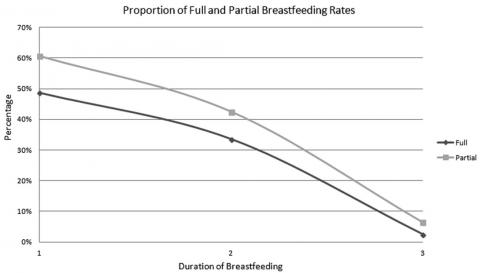 -environ 60% des bébés ont été allaités au moins partiellement pendant un mois,