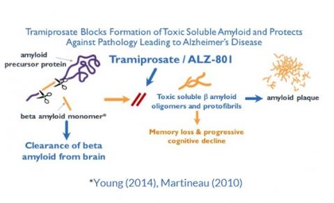 De précédents essais avaient déjà confirmé l'efficacité du tramiprosate à améliorer la cognition et le fonctionnement de patients atteints de la maladie d'Alzheimer porteurs du facteur de risque génétique APOE4 / 4. Cette nouvelle étude révèle le mécanisme qui explique cette efficacité clinique. « Maintenant la molécule ALZ-801 est prête pour les derniers essais d'efficacité ».