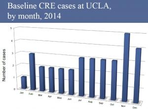 Assortie d'un taux de mortalité qui avoisine les 50%, CRE est désormais considérée par les US Centers for Disease Control and Prevention (CDC) comme le symbole de l'antiobiorésistance bactérienne, des infections nosocomiales (à l'hôpital) et la bactérie ennemie publique N°1. L'alerte remonte au début de l'année 2015, avec 2 premiers décès documentés à l'hôpital de l'Université de Californie Los Angeles (UCLA), qui, depuis se sont multipliés (voir schéma ci-contre). Son défi, CRE résiste aujourd'hui à tous les antibiotiques et si jusqu'à récemment, un « vieil » antibiotique, la colistique, permettait d'en venir à bout, CRE a depuis développé des mutations qui la rendent invincible.