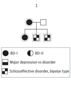 · L'approche en 2 phases ici adoptée par les chercheurs a consisté à partir du trouble bipolaire et à effectuer un séquençage cas/témoins de l'exome (partie du génome exprimée) familial afin de maximiser les chances d'identifier des variantes rares qui contribuent au trouble bipolaire. L'analyse de l'exome familial permet en effet d'identifier les variantes héritées (voir visuel ci-contre: 3 exemple d'exomes famiiaux). Cette analyse a permis d'identifier 84 variantes rares sur 82 gènes.