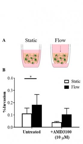 De précédentes études in vitro ont déjà montré que le flux de liquide interstitiel, qui remplit l'espace entre les capillaires sanguins et les cellules favorise la propagation des cellules cancéreuses en particulier via une voie de signalisation « CXCR4-CXCL12 ». Cette étude confirme ce processus in vivo, précisément sur une souris modèle de glioblastome.