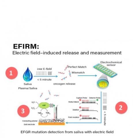 Un test sanguin pour détecter le cancer du poumon plus tôt dans la maladie : la nouvelle technologie nommée « EFIRM » repose lui-aussi sur le principe de la biopsie liquide non invasive. Jusque-là, les chercheurs avaient mesuré avec succès 2 mutations d'EGFR (p.L858R et Exon 19del) chez de patients atteints de cancer avancé. Ici ils parviennent à les détecter chez 248 patients présentant une maladie au stade précoce, soit des nodules pulmonaires déterminés par radiographie. Parmi ces patients, 44 ont reçu un diagnostic de CPNPC de stade I ou de stade II et EFIRM a pu détecter la mutation p.L858R dans 11 des 12 échantillons et la mutation Exon 19del dans 7 des 9 échantillons.