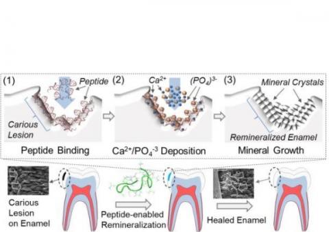 Cette technique basée sur les protéines-mêmes qui « construisent » la dent, développée par une équipe de l’Université de Washington (UW) permettrait de réparer et reconstruire l'émail dentaire et traiter les caries sans passer par les traitements dentaires actuels, lourds et coûteux. Un nouveau composite, ou un nouveau dentifrice préventif ? présentés dans la revue ACS Biomaterials Science and Engineering, illustreront bientôt cette alternative aux soins actuels : la reminéralisation guidée par les peptides.