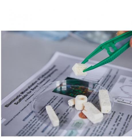 Ensuite, l’équipe va jusqu’à développer des dispositifs précis, utilisables ou prometteurs en biomédecine et en génie pharmaceutique : pour la chirurgie buccale par exemple, des échafaudages à base de cellulose avec os de seiche et des capsules d'alginate de calcium pour des défauts osseux de petite taille. Ces dispositifs sont biocompatibles et biodégradables, c’est-à-dire qu’ils disparaissent naturellement et s'intègrent dans l'organisme humain pendant le processus de guérison.