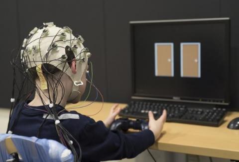On sait qu'une réponse émoussée à la récompense est observée dans le cerveau des adultes et des adolescents déprimés. Une précédente recherche de la même équipe avait révélé qu'une capacité réduite à éprouver de la joie est un signe clé de la dépression clinique chez les jeunes enfants. Cette nouvelle étude contribue à expliquer cette absence de réponse et comment, chez les enfants déprimés le cerveau traite les émotions. Le Dr Joan L. Luby, directeur du programme de développement émotionnel de l'Université de Washington rappelle toute l'importance du système de la récompense qui participe à la motivation et donc à la réussite. Un affaiblissement de ce processus dès le début du développement cognitif peut donc être sérieusement préoccupant car il révèle une difficulté possible à l'apprentissage et à l'accomplissement plus général de tâches gratifiantes plus tard la vie. Ici, les chercheurs constatent cette réponse affaiblie dans le cerveau d'enfants dès l'âge de 4 ans. Leur recherche a été menée sur 84 enfants, dans le cadre d'une étude plus large sur la dépression clinique chez les enfants âgés de 3 à 7ans, équipés d'un dispositif (voir visuel ci-contre) permettant de mesurer l'activité électrique dans le cerveau par électroencéphalogramme (EEG). Durant l'examen, les enfants jouaient sur ordinateur à un jeu impliquant le choix entre 2 portes, une porte ouvrant sur un gain de points, l'autre sur une perte de points. L'expérience a également été pratiquée chez des adultes et des adolescents avec, à la clé, un gain ou une perte d'argent. En ce qui concerne les enfants, les points gagnés leur permettaient de choisir un lot parmi un choix de jouets et de peluches. L'expérience montre que si le cerveau des enfants cliniquement déprimés répond de la même façon que ceux des enfants non déprimés en cas de perte de points, la réponse est affaiblie en cas de gain. La réponse à la récompense peut-elle être améliorée ? Le cerveau des enfants dépressifs ne réagit pas aussi fortement à une perspective agréable, et quasiment de manière similaire qu'à la mauvaise perspective. Cette réponse peut-elle être rétablie ? Les auteurs ne tranchent pas. Ils suggèrent, si cet effet persiste, aux parents de consulter : des enfants constamment tristes, irritables ou moins motivés, peuvent souffrir de dépression, même à 3 ou 4 ans.