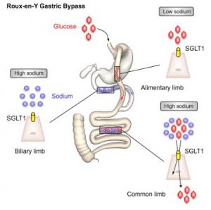 En cas de bypass, le glucose est absorbé uniquement lorsqu'il entre en contact de la bile et du sel qu'elle contient. Ainsi, l'étude contribue à expliquerplusieurs observations jusque-là incomprises, comme la diminution immédiate du taux de sucre après un repas chez les patients diabétiques opérés, ou la meilleure efficacité des interventions réduisant le plus la longueur d'intestin fonctionnel. Plus généralement, ces résultats confirment aussi l'influence du contenu en sel des repas sur l'élévation de la glycémie, récemment illustrée chez des individus sains, par une étude israélienne (Zeevi et al. Cell 2015).