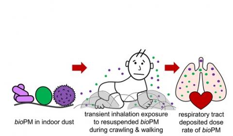 Lorsqu’un nourrisson rampe, à 4 pattes, la matière particulaire biologique (« bioPM ») en suspension sur les sols et les tapis prend son envol sous forme de nuage et l’exposition par inhalation de l’enfant est à la fois très élevée et associée à des effets sur la santé. Cette recherche de la Purdue University (Indiana) sur l'exposition par inhalation chez le nourrisson mais aussi l'adulte montre dans la revue, que ces expositions 20 fois plus élevées que l’exposition habituelle agissent à la fois pour stimuler et défier le système immunitaire.