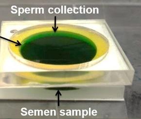 Une alternative, par technique microfluidique : De précédentes recherches sur des dispositifs microfluidiques ont montré leur efficacité à sélectionner des spermatozoïdes très mobiles et à bonne morphologie, et cela avec un taux significativement réduit de dommages à l'ADN. C'est le principe du dispositif développé par les chercheurs de la Florida Atlantic University se compose d'une ouverture pour l'injection du sperme brut et de 2 chambres séparées par une simple membrane en matière plastique poreuse. Le sperme le plus sain et le plus motile passe l'obstacle de la membrane poreuse et « laisse derrière lui le sperme moins vigoureux. Ce système de sélection (voir visuel ci-contre) permet de recueillir le sperme sain en 30 minutes environ.