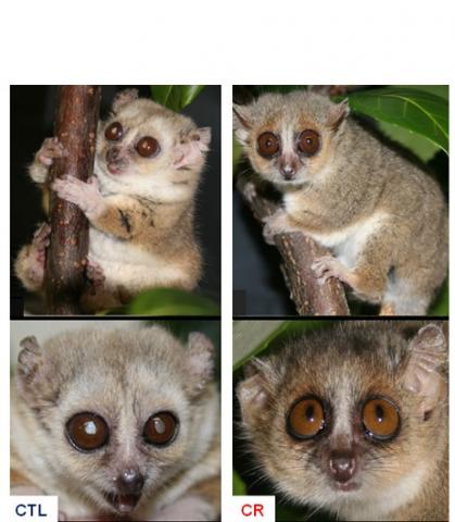 Plus de longévité : Dans cette nouvelle étude, les scientifiques exposent un groupe de primates lémuriens, des microcèbes, à une restriction calorique de 30% depuis l'âge adulte et pendant toute leur vie. Après 10 ans de restriction calorique, la durée de vie des lémuriens est augmentée de près de 50%, par rapport aux animaux témoins. Ainsi leur durée de vie médiane atteint près de 10 ans, vs 6 ans pour les lémuriens témoins.