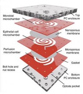 Les scientifiques du Luxembourg Centre for Systems Biomedicine (LCSB - University of Luxembourg) et de l'Université d'Arizona, réalisent ici une prouesse car l'intestin est l'un des organes humains les plus complexes : ce site du corps entre en contact avec toutes sortes de composés dérivés de nos aliments et avec d'innombrables bactéries. Leur modèle aujourd'hui breveté d'intestin humain, HuMiX, est, en effet représentatif des conditions et des processus réels qui se produisent dans nos intestins. HuMiX pour Human Microbial Cross-talk, permet en particulier la culture de cellules et de bactéries intestinales humaines, ensemble, dans un très petit espace et dans des conditions représentatives. Le dispositif est composé de 3 chambres : dans la chambre supérieure, les nutriments circulent en continu, dans la chambre du milieu, les cellules humaines peuvent se développer, sur une membrane très mince, dans la chambre la plus basse, ce sont les bactéries qui se développent. Avec HuMiX, les chercheurs peuvent observer l'interaction des bactéries en temps réel grâce à la communication prévue avec les cellules intestinales humaines. Les essais confirent la conformité d'HuMiX à partir de cultures de souches bactériennes différentes. Les chercheurs peuvent observer comment l'activité des gènes et le métabolisme des cellules épithéliales intestinales évoluent en fonction des souches bactériennes utilisées. En comparant leurs données avec les résultats d'autres recherches menées sur l'homme ou l'animal, les auteurs aboutissent à une forte concordance. HuMiX semble donc apporter une représentation très précise des processus cellulaires et moléculaires qui ont lieu dans l'intestin humain. « Avec HuMiX, nous pouvons étudier des processus jusque-là inaccessibles par les méthodes expérimentales existantes », expliquent les chercheurs.