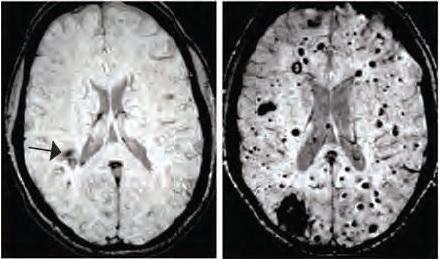 Ces dernières semaines, on ne compte plus les études qui documentent cet interface microbiote intestinal- cerveau. Une étude récente a apporté une démonstration imparable, chez la souris : greffer « du » microbiote humain d'un sujet atteint du syndrome du côlon irritable entraîne chez l'animal, non seulement le développement des mêmes symptômes intestinaux mais également un comportement qui reflète l'agitation et l'anxiété. La stimulation électromagnétique du cerveau peut également modifier la composition du microbiote intestinal. Enfin, des chercheurs de l'Université de York ont également montré que l'augmentation des niveaux alimentaires du neurotransmetteur inhibiteur, l'acide gamma-aminobutyrique (GABA), pouvait influencer les réponses neuronales aux stimuli sensoriels basiques. Enfin des chercheurs de l'Université de Californie – Los Angeles (UCLA) ont montré chez des patients atteints du syndrome du côlon irritable, l'association entre les microbes intestinaux et la structure du cerveau. Cette nouvelle étude suggère que le microbiote intestinal peut influencer la structure des vaisseaux sanguins du cerveau jusqu'au risque d'AVC ou d'épilepsie. Les malformations caverneuses cérébrales (MCC) – visuel de droite- sont des grappes de vaisseaux sanguins dilatés et à paroi mince qui peuvent entrainer des convulsions ou des accidents vasculaires cérébraux en cas de fuites de sang dans le tissu cérébral environnant.