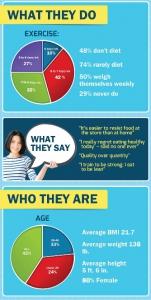 - un groupe, naturellement mince, composé de 112 adultes qui déclarent ne jamais avoir faire attention ou suivre un régime strict.
