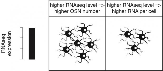 Notre odorat est induit ou permis par notre organe olfactif du nez, composé de neurones sensoriels contenant des récepteurs qui détectent les odeurs. Il existe environ un millier de types différents de récepteurs olfactifs dans le nez, à comparer à seulement 3 types de récepteurs visuels dans l'œil et 49 types de récepteurs gustatifs sur la langue. De tous nos sens, notre système olfactif est le plus complexe et les combinaisons de signaux provenant de différents récepteurs olfactifs nous permettent de sentir un très large répertoire d'odeurs. Cependant on n'a jamais su totalement expliquer pourquoi certains d'entre nous ont « du nez » et d'autres pas. La recherche, menée par une équipe du Wellcome Trust Sanger Institute a porté sur des souris génétiquement identiques qui ont grandi dans différents environnements et des souris génétiquement différentes qui ont grandi dans le même environnement. Les chercheurs montrent sur les souris génétiquement identiques que ces souris vont développer différents récepteurs de l'odorat en réponse à des environnements distincts. Lorsque les chercheurs exposent les récepteurs du nez de souris à certaines odeurs au cours de la vie, ils constatent par séquençage de l'ARN, que si les gènes récepteurs présents étaient déterminés par la génétique, les gènes récepteurs actifs sont impactés par l'environnement. Ainsi, les expositions environnementales aux odeurs au cours de la vie déterminent les niveaux de cellules capables d'identifier chaque odeur (Visuel ci-contre).