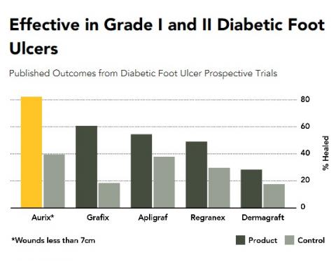 Aurix ™ est ainsi le premier dispositif gel à base de plaquettes et de plasma autorisé par l'Agence américaine FDA, pour le traitement des ulcères et plaies chroniques de tous types (escarres, ulcères du pied diabétique et ulcère veineux) de tous stades. Contrairement à d'autres options de thérapie cellulaire, le gel Aurix ™ est dérivé des plaquettes et du plasma du patient. Une fois appliqué, Aurix va travailler à stimuler la reformation du tissu (épithélialisation) permettant ainsi de combler peu à peu le lit de la plaie, de la réduire et de parvenir à sa cicatrisation.