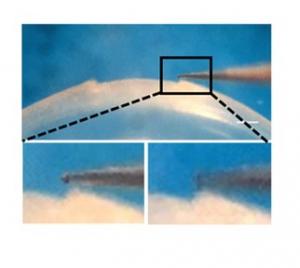 Champs électriques et cicatrisation des plaies : aux tissus vivants, sont associés des champs électriques spécifiques. La même équipe avait déjà démontré que certains niveaux d'intensité de ces champs électriques sont associés à la cicatrisation de lésions de la cornée, la couche extérieure transparente de l'œil (Schéma ci-contre). Ici, en utilisant une sonde très sensible pour mesurer ces champs électriques dans les cornées des yeux de souris, les chercheurs montrent :