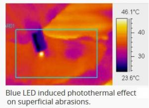 Ainsi, le recours à un dispositif hémostatique à base de LED bleue peut accélérer, grâce à son action photo-thermique, le processus de cicatrisation des plaies superficielles, sans effets secondaires indésirables. On pense donc à une utilisation possible pour traiter certaines dermabrasions superficielles.