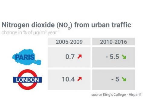 De nombreuses politiques ont été mises en œuvre, à Londres comme à Paris, pour lutter contre la pollution de l'air, dans le cadre des programmes menés aux niveaux européen, des pays et des municipalités. Cependant cette étude révèle que, si depuis 2010, ces améliorations ont permis d'améliorer les concentrations en dioxyde d'azote et de particules fines dans les deux villes étudiées, les résultats restent insuffisants : le taux de changement n'a pas permis d'atteindre les limites reommandées. En particulier, l’étude relève que les niveaux de dioxyde d'azote provenant de la circulation à Londres ont augmenté le long de certaines routes.