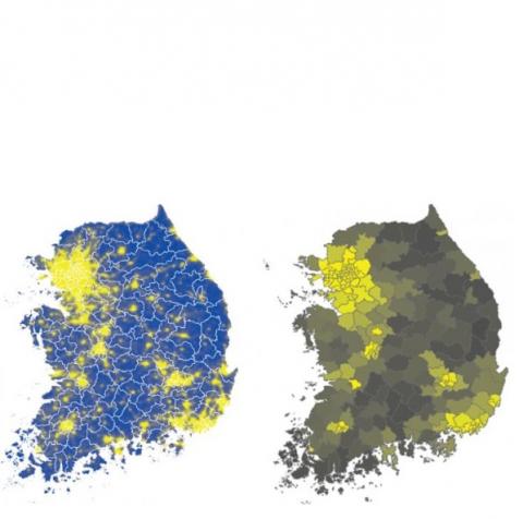 L’analyse est basée sur les données de la cohorte NHIS-NSC (National Health Service ) de 2002-2013, une cohorte basée en Corée du Sud comprenant 52.027 adultes âgés de 60 ans ou plus, à 60% des femmes. L'exposition à la lumière a été estimée à partir des données satellitaires fournies par les centres d'information sur l'environnement (Voir visuel 2 soit l'image de la pollution lumineuse par satellite (visuel à gauche) et la valeur moyenne de cette pollution lumineuse (à droite), avec des couleurs les plus claires correspondant à une pollution lumineuse plus élevée). L’analyse met en évidence un lien dose-dépendant, l'augmentation des niveaux d'exposition nocturne à la lumière artificielle étant associée à une prévalence accrue des prescriptions d’hypnotiques. Les adultes âgés exposés à une lumière artificielle extérieure plus intense la nuit s’avèrent ainsi plus susceptibles d’utiliser des médicaments hypnotiques pendant de longues périodes ou de prendre des doses quotidiennes plus élevées. Ainsi, au total, 22% des participants avaient reçu une ou plusieurs prescriptions de médicaments hypnotiques.