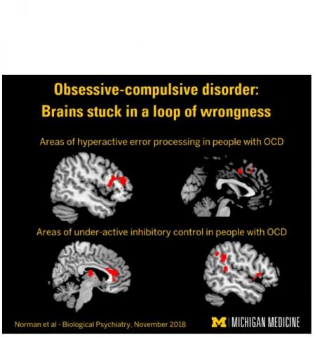 Une erreur en boucle incessante : cette analyse des scanners cérébraux de centaines de personnes atteintes de TOC et de personnes non atteintes de cette maladie, en identifiant les zones et les processus cérébraux spécifiques liés à ces comportements répétitifs, suggère que les cerveaux des patients atteints de TOC se retrouvent coincés dans une boucle d’erreurs qu’ils ne peuvent arrêter même s’ils savent qu’ils le devraient : « Nos résultats montrent que, dans le TOC, le cerveau réagit trop aux erreurs et trop peu pour arrêter les signaux » résume l’auteur principal, le Dr Luke Norman, chercheur au Département de psychiatrie de l’UM.
