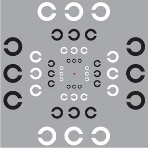 Lorsque les participants sont invités à déplacer leur regard vers l'endroit où le centre de l'horloge centrale est apparu, mais une fois qu'il a disparu, les chercheurs notent une forte corrélation entre l'importance de l'encombrement et la capacité des participants à fixer ce « spot » (Visuel de gauche). Chacun a sa propre sensibilité visuelle, avec des îlots ou spots de vision médiocres.